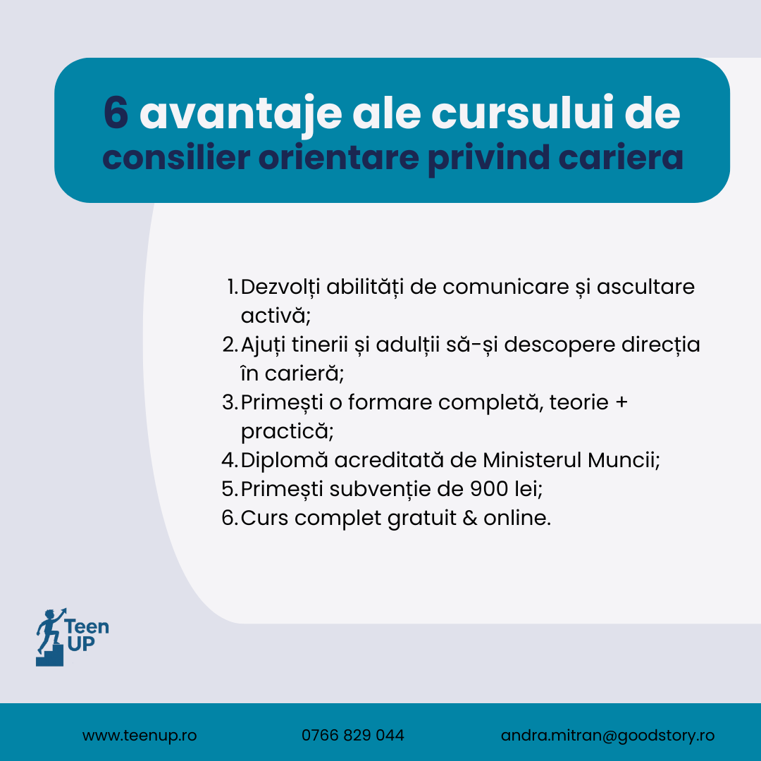 Chiar dacă nu alegi să devii consilier, acest curs te pregătește pentru viață.Abilitățile pe care le dobândești — comunicare, ascultare activă, empatie […]
