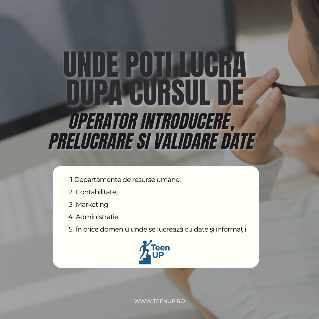 După finalizarea cursului de Operator introducere, validare și prelucrare date, vei putea aplica în departamente de resurse umane, contabilitate, marketing sau administrație. […]