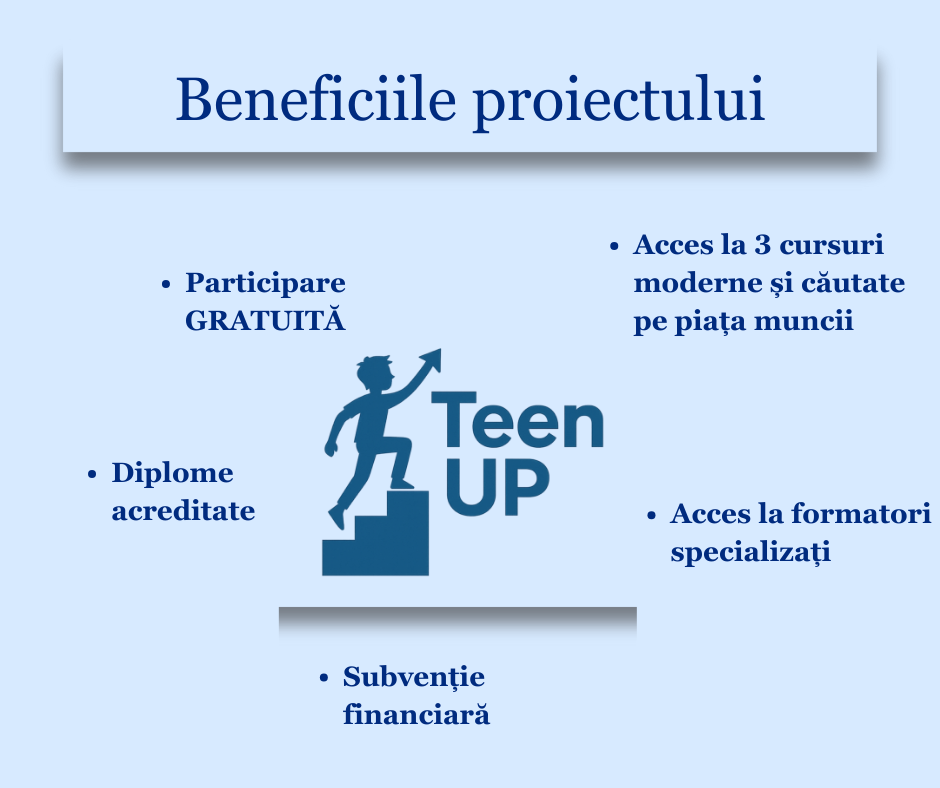 14 iulie 202531 iulie 2025Cursuri Publicul țintă al proiectului 📌 Cursurile TeenUp sunt gratuite, dar iată cui se adresează exact.Tinerii care pot participa la cursurile gratuite din proiectul TeenUp trebuie să […]